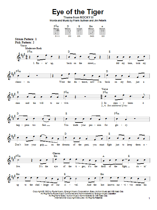 Download or print Survivor Eye Of The Tiger sheet music, chords and digital score arranged for Lead Sheet / Fake Book. This Pop score includes 1 page(s).