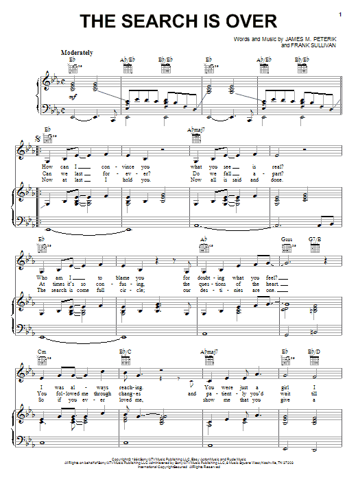 Download or print Survivor The Search Is Over sheet music, chords and digital score arranged for Lead Sheet / Fake Book. This Pop score includes 2 page(s).