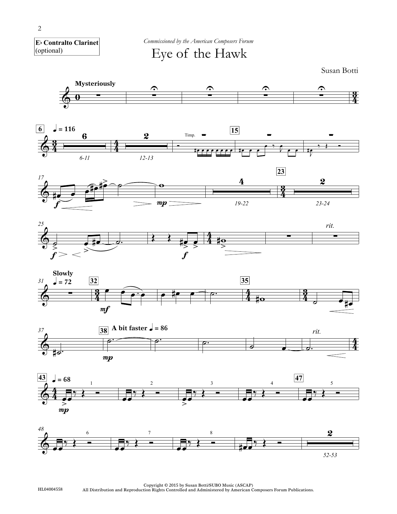 Download or print Susan Botti Eye of the Hawk - Contralto Clarinet sheet music, chords and digital score arranged for Concert Band. This Concert score includes 2 page(s).