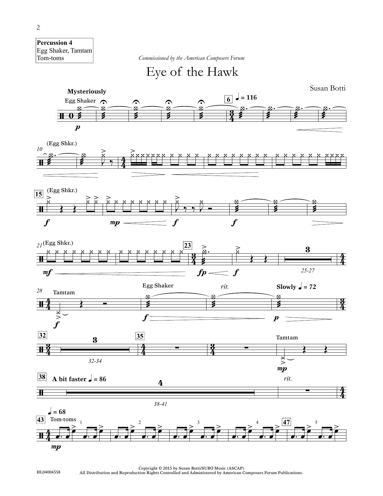 Download or print Susan Botti Eye of the Hawk - Percussion 4 sheet music, chords and digital score arranged for Concert Band. This Concert score includes 2 page(s).
