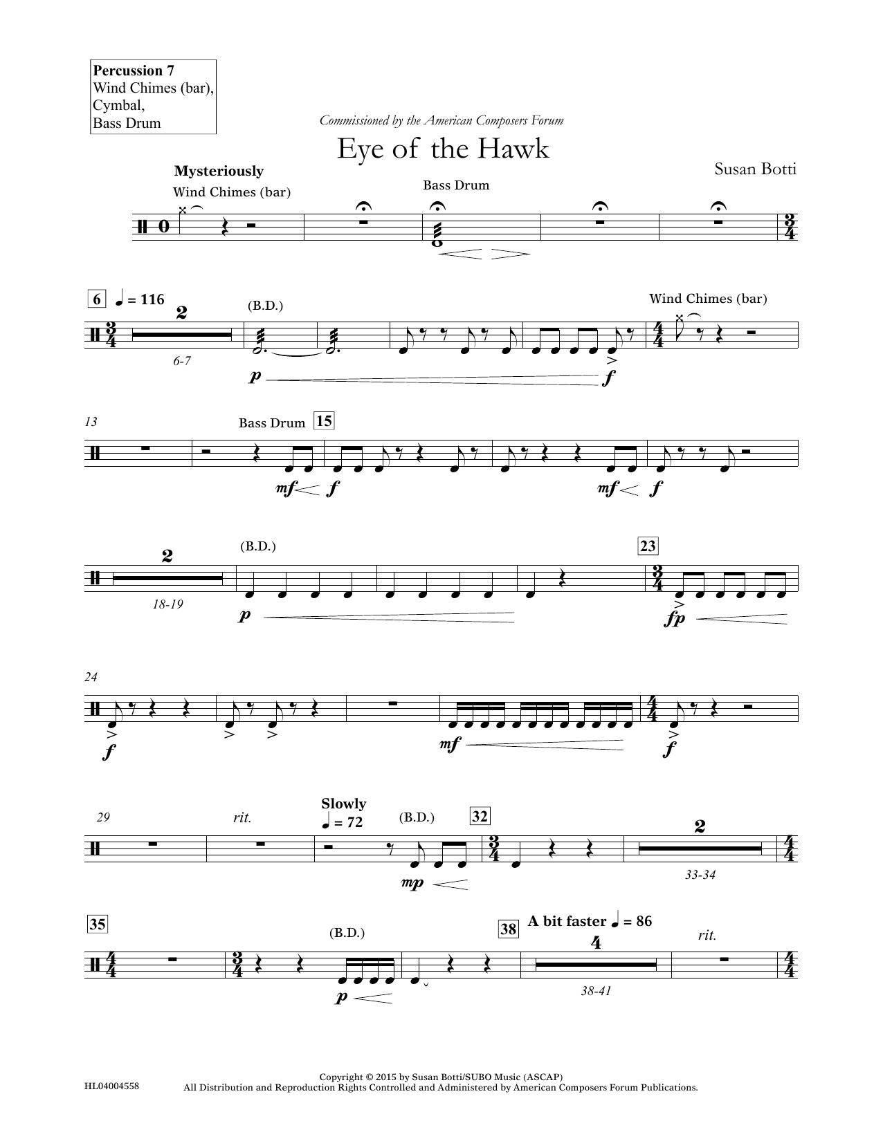 Download or print Susan Botti Eye of the Hawk - Percussion 7 sheet music, chords and digital score arranged for Concert Band. This Concert score includes 3 page(s).