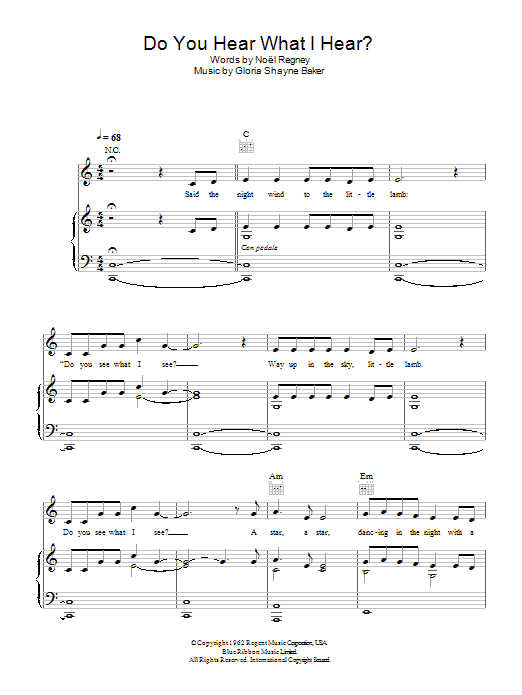 Download or print Susan Boyle Do You Hear What I Hear? sheet music, chords and digital score arranged for Piano, Vocal & Guitar Chords. This Children score includes 6 page(s).