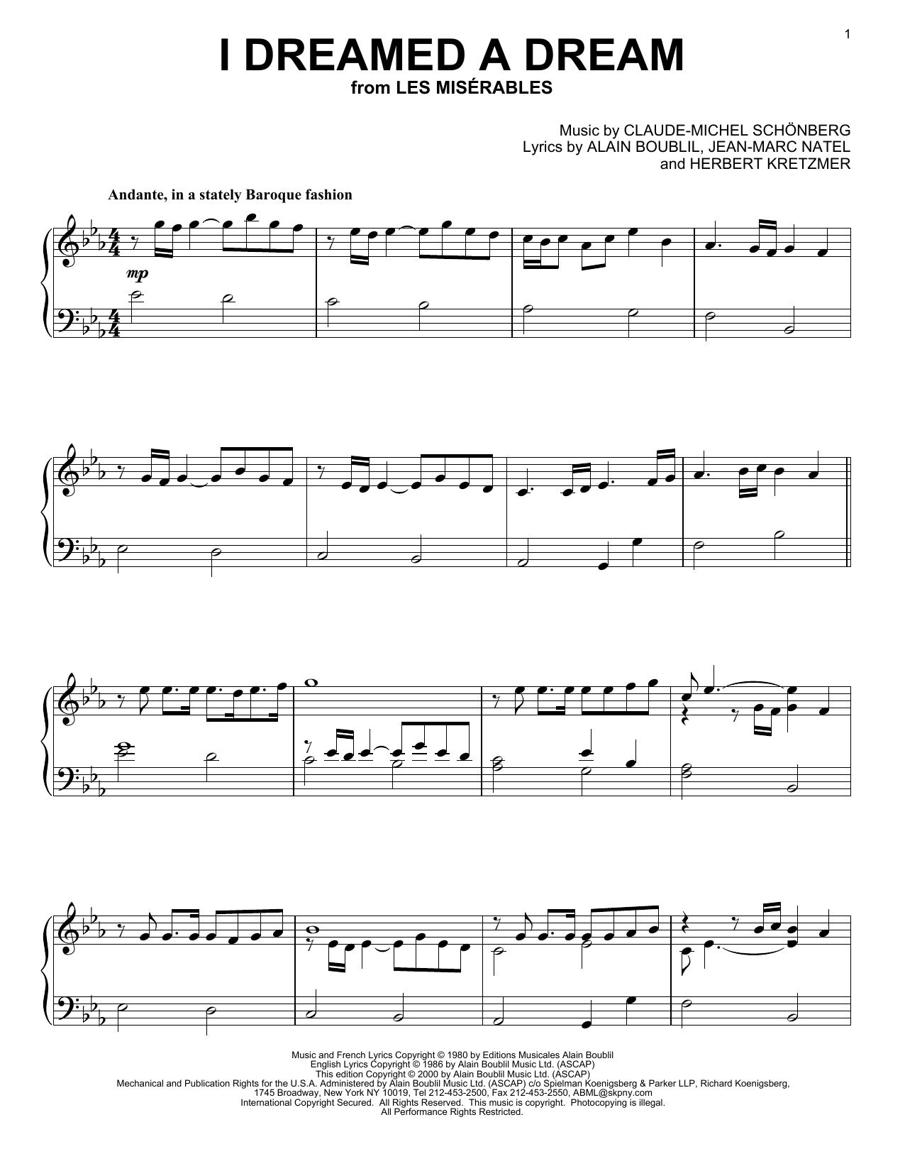 Download or print Alain Boublil & Claude-Michel Schonberg I Dreamed A Dream sheet music, chords and digital score arranged for Piano Solo. This Jazz score includes 4 page(s).