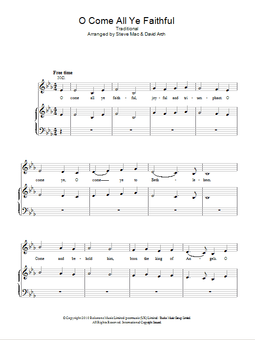 Download or print Susan Boyle O Come All Ye Faithful sheet music, chords and digital score arranged for Piano, Vocal & Guitar Chords. This Christian score includes 3 page(s).