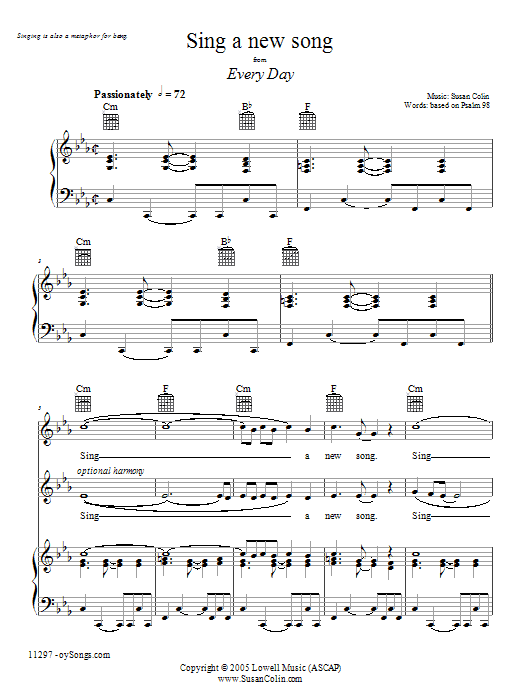 Download or print Susan Colin Sing a New Song sheet music, chords and digital score arranged for Piano, Vocal & Guitar Chords (Right-Hand Melody). This Traditional score includes 5 page(s).