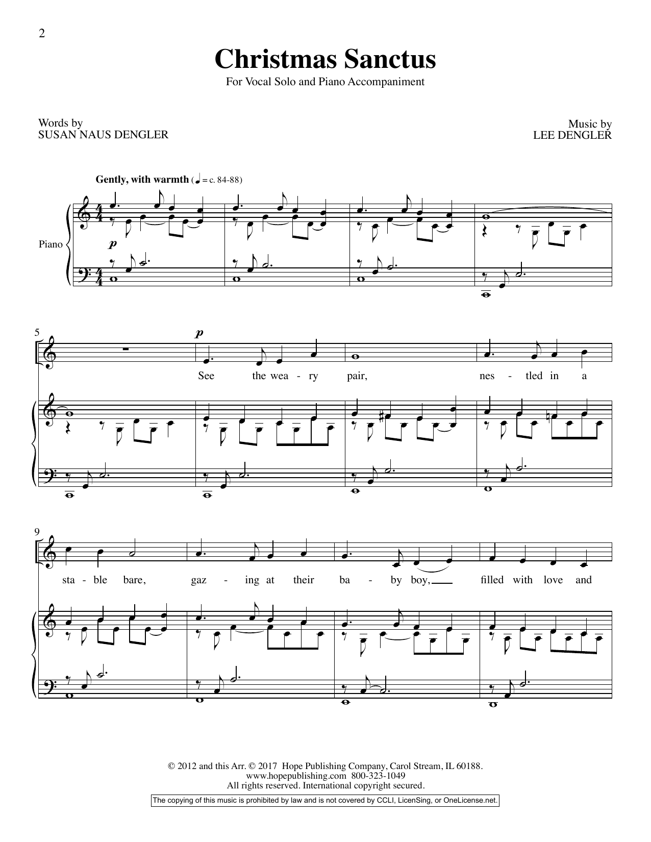 Download or print Susan Naus Dengler Christmas Sanctus sheet music, chords and digital score arranged for Piano & Vocal. This Christmas score includes 6 page(s).