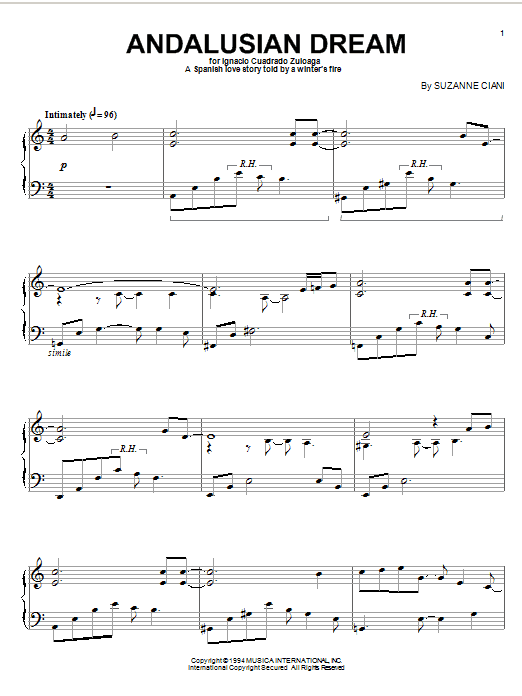 Download or print Suzanne Ciani Andalusian Dream sheet music, chords and digital score arranged for Piano Solo. This New Age score includes 7 page(s).