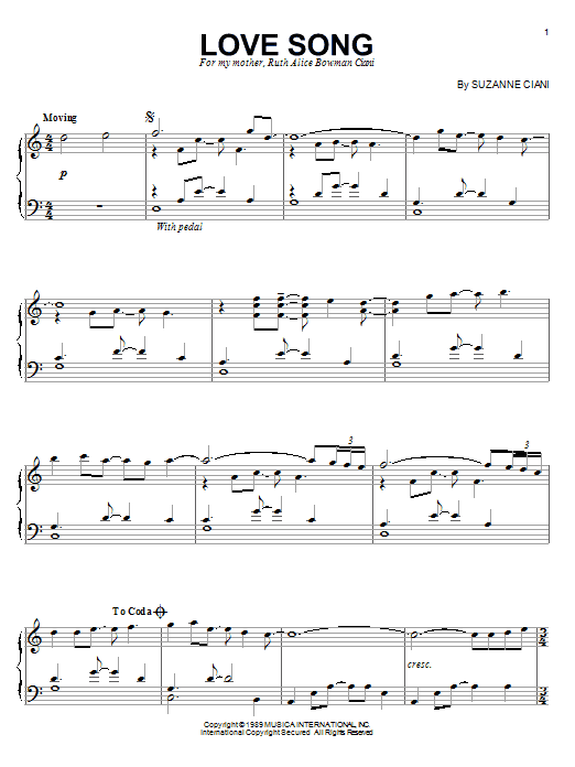 Download or print Suzanne Ciani Love Song sheet music, chords and digital score arranged for Piano Solo. This New Age score includes 6 page(s).