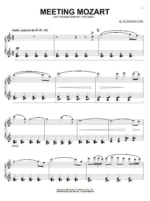 Download or print Suzanne Ciani Meeting Mozart sheet music, chords and digital score arranged for Piano Solo. This New Age score includes 6 page(s).