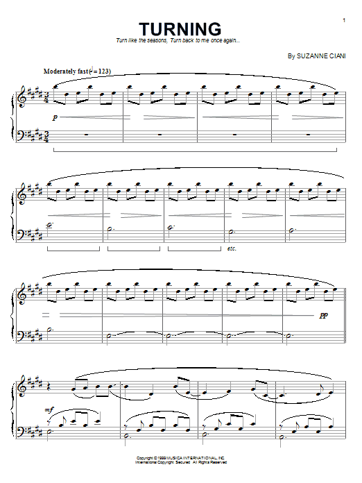 Download or print Suzanne Ciani Turning sheet music, chords and digital score arranged for Piano Solo. This New Age score includes 6 page(s).