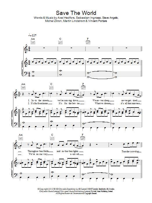 Download or print Swedish House Mafia Save The World sheet music, chords and digital score arranged for Piano, Vocal & Guitar Chords. This Pop score includes 5 page(s).