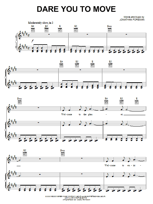 Download or print Switchfoot Dare You To Move sheet music, chords and digital score arranged for Easy Piano. This Christian score includes 10 page(s).