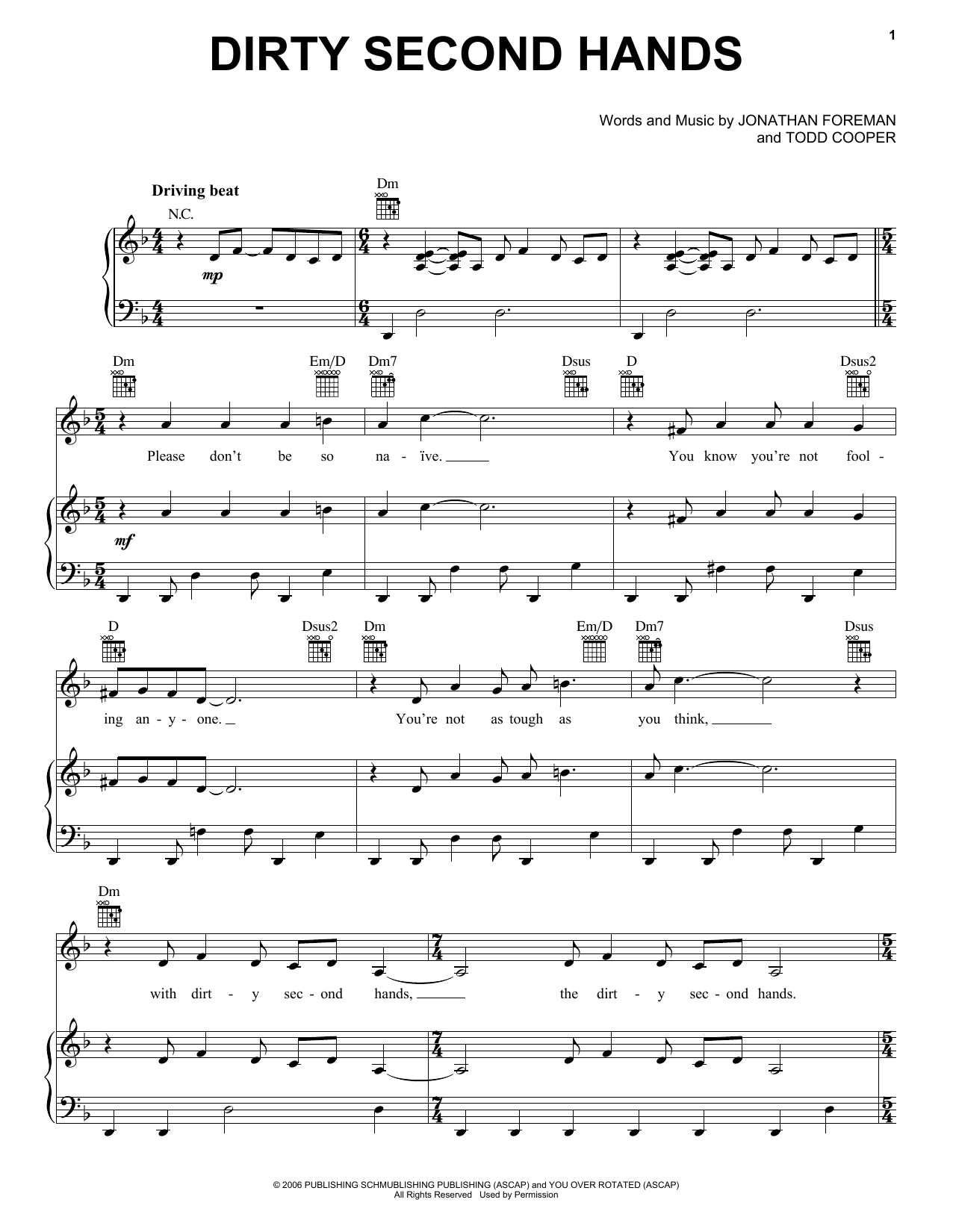 Download or print Switchfoot Dirty Second Hands sheet music, chords and digital score arranged for Piano, Vocal & Guitar Chords (Right-Hand Melody). This Pop score includes 8 page(s).