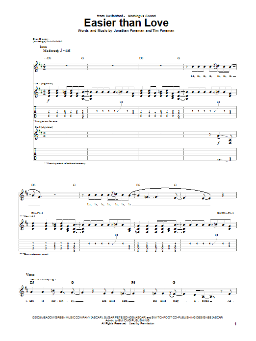 Download or print Switchfoot Easier Than Love sheet music, chords and digital score arranged for Guitar Tab. This Christian score includes 9 page(s).