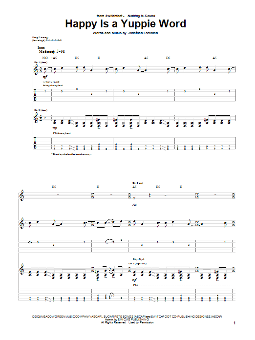Download or print Switchfoot Happy Is A Yuppie Word sheet music, chords and digital score arranged for Guitar Tab. This Christian score includes 10 page(s).