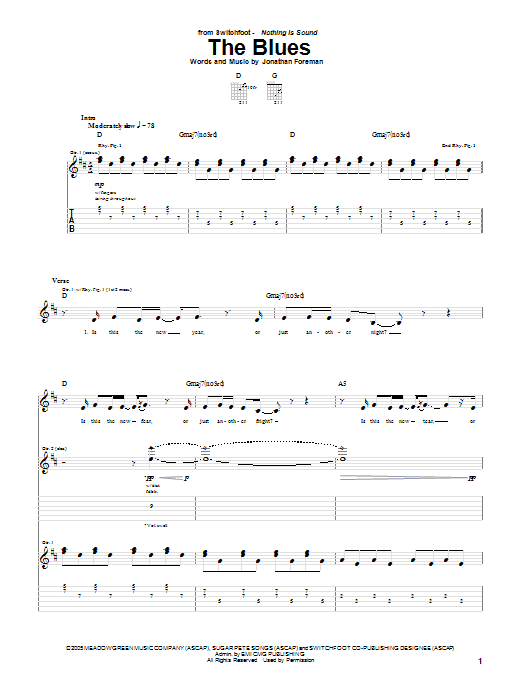 Download or print Switchfoot The Blues sheet music, chords and digital score arranged for Piano, Vocal & Guitar Chords (Right-Hand Melody). This Christian score includes 10 page(s).