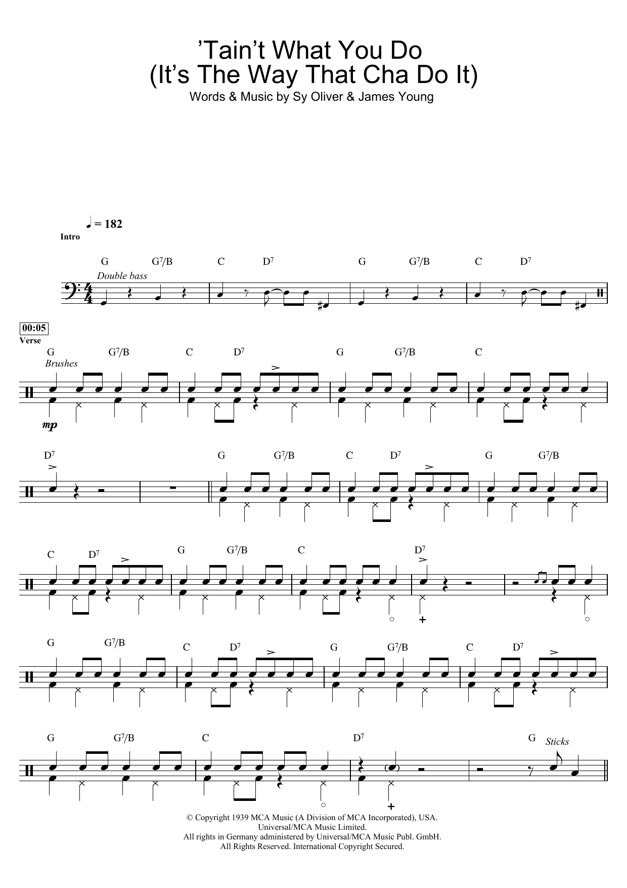 Download or print Sy Oliver 'Tain't What You Do (It's The Way That Cha Do It) sheet music, chords and digital score arranged for Drums. This Jazz score includes 4 page(s).