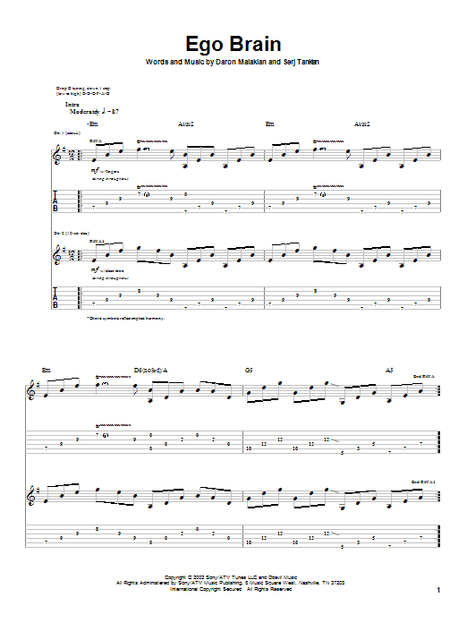 Download or print System Of A Down Ego Brain sheet music, chords and digital score arranged for Guitar Tab. This Metal score includes 5 page(s).