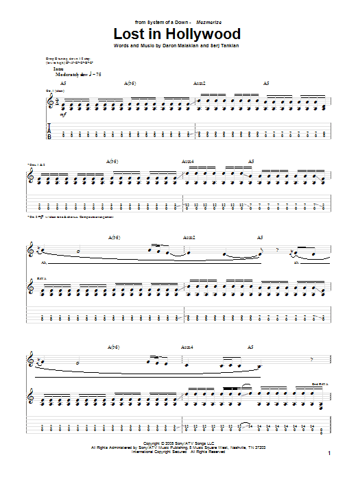 Download or print System Of A Down Lost In Hollywood sheet music, chords and digital score arranged for Guitar Tab. This Metal score includes 8 page(s).