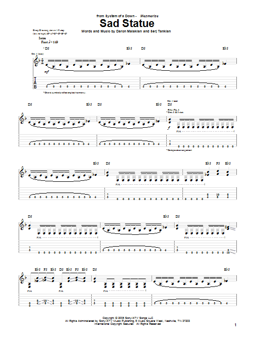 Download or print System Of A Down Sad Statue sheet music, chords and digital score arranged for Guitar Tab. This Metal score includes 9 page(s).