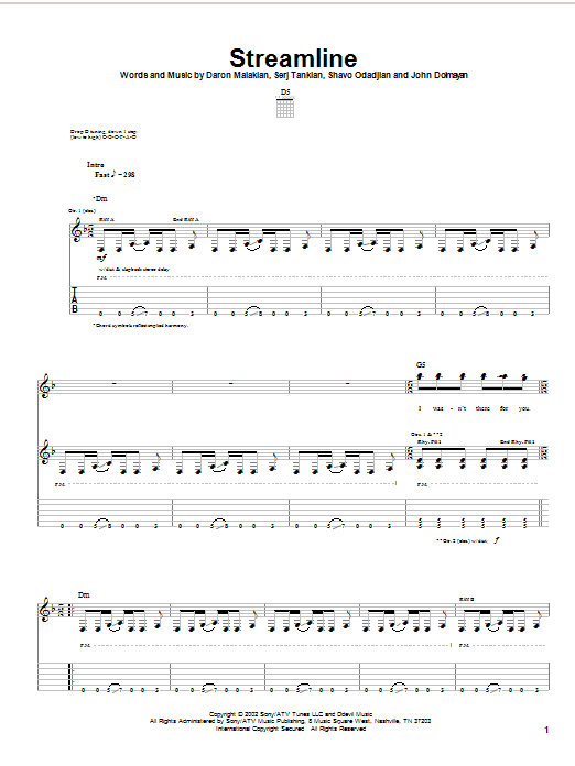 Download or print System Of A Down Streamline sheet music, chords and digital score arranged for Guitar Tab. This Metal score includes 8 page(s).