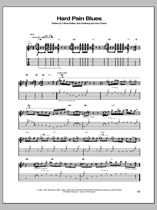 Download or print T-Bone Walker Hard Pain Blues sheet music, chords and digital score arranged for Guitar Tab. This Blues score includes 5 page(s).