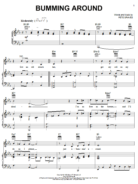 Download or print T. Texas Tyler Bumming Around sheet music, chords and digital score arranged for Piano, Vocal & Guitar Chords (Right-Hand Melody). This Country score includes 3 page(s).