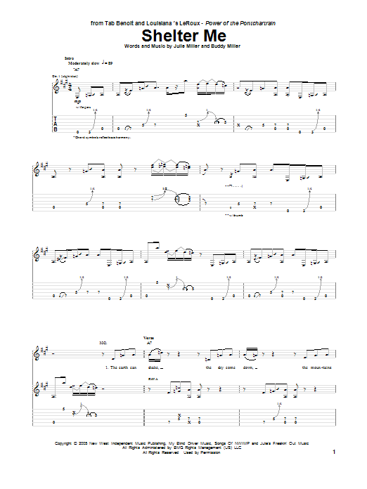 Download or print Tab Benoit Shelter Me sheet music, chords and digital score arranged for Guitar Tab. This Blues score includes 11 page(s).
