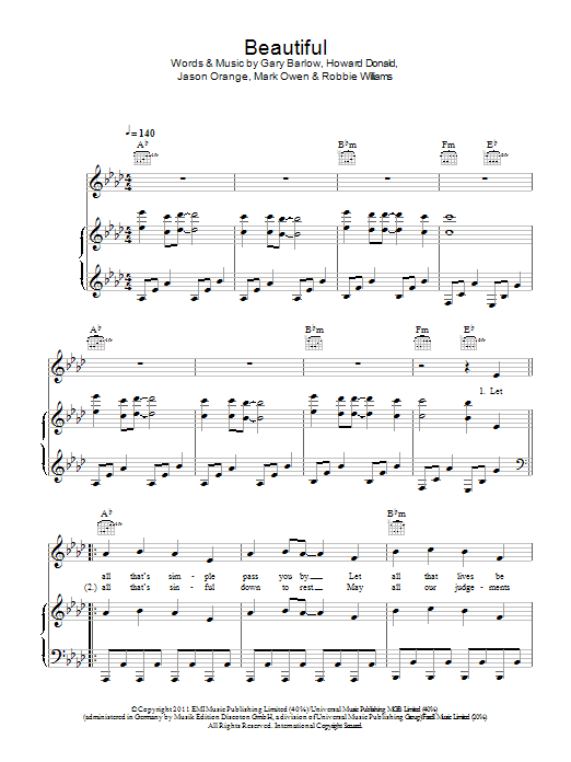 Download or print Take That Beautiful sheet music, chords and digital score arranged for Piano, Vocal & Guitar Chords. This Pop score includes 7 page(s).