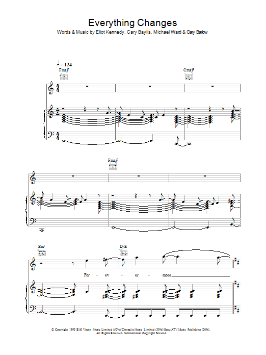 Download or print Take That Everything Changes sheet music, chords and digital score arranged for Guitar Chords/Lyrics. This Pop score includes 3 page(s).
