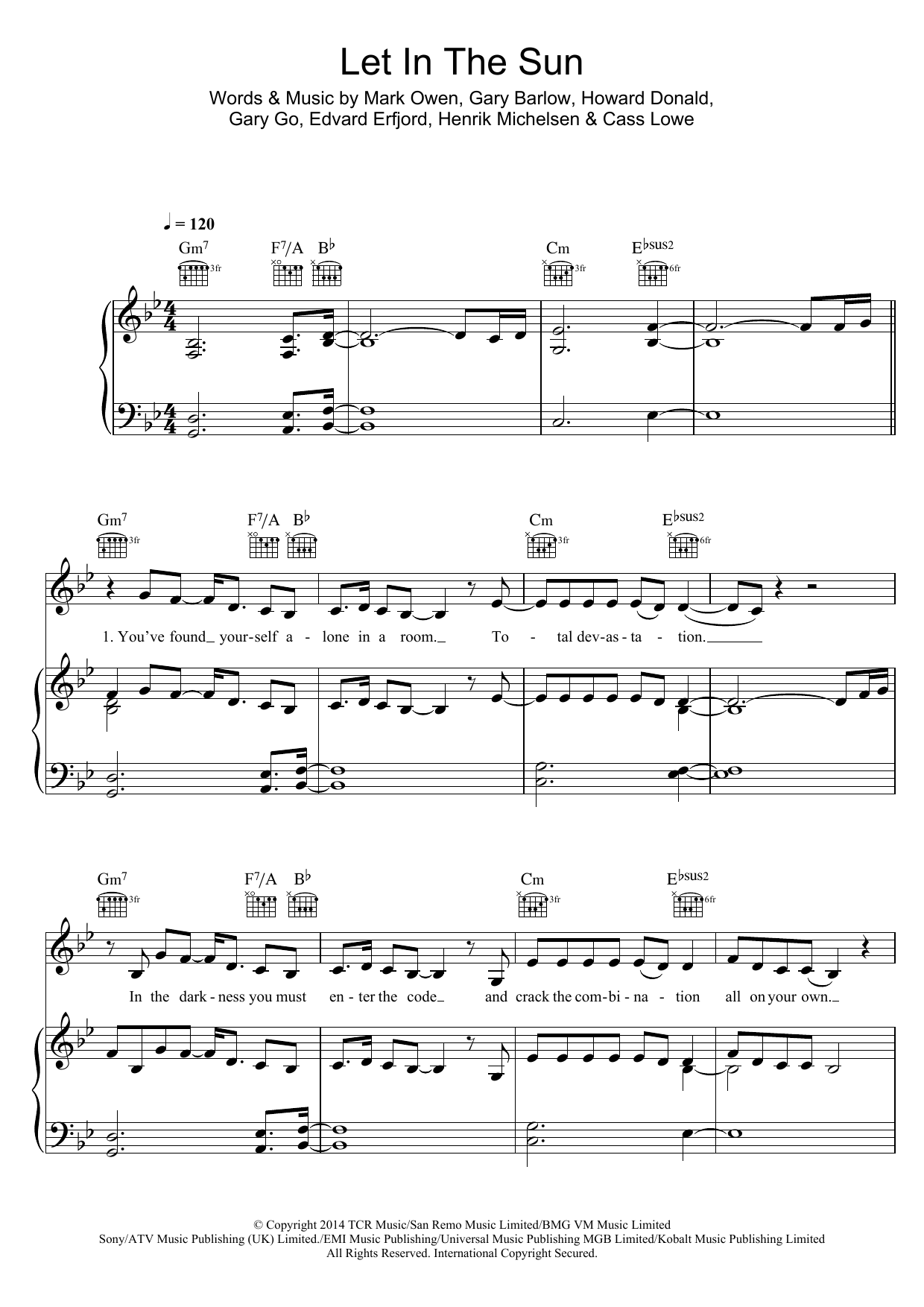 Download or print Take That Let In The Sun sheet music, chords and digital score arranged for Piano, Vocal & Guitar Chords. This Pop score includes 6 page(s).