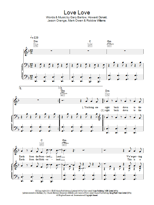 Download or print Take That Love Love sheet music, chords and digital score arranged for Piano, Vocal & Guitar Chords. This Pop score includes 6 page(s).