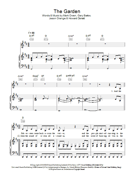Download or print Take That The Garden sheet music, chords and digital score arranged for Piano, Vocal & Guitar Chords. This Pop score includes 6 page(s).
