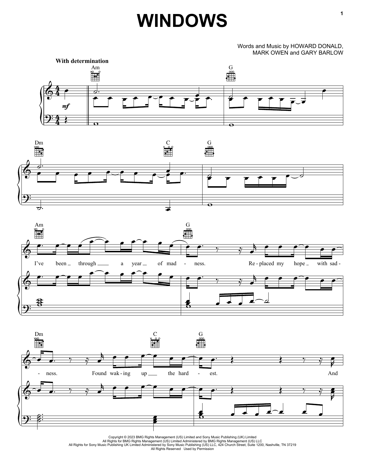 Download or print Take That Windows sheet music, chords and digital score arranged for Piano, Vocal & Guitar Chords (Right-Hand Melody). This Pop score includes 7 page(s).