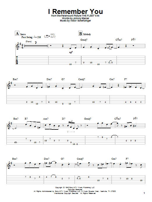 Download or print Tal Farlow I Remember You sheet music, chords and digital score arranged for Guitar Tab (Single Guitar). This Jazz score includes 11 page(s).