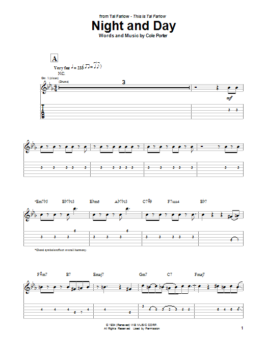 Download or print Tal Farlow Night And Day sheet music, chords and digital score arranged for Guitar Tab. This Jazz score includes 11 page(s).