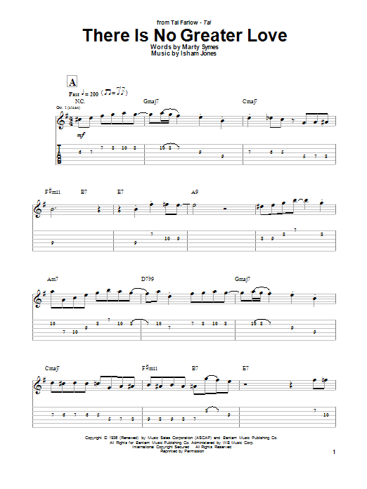 Download or print Tal Farlow There Is No Greater Love sheet music, chords and digital score arranged for Guitar Tab. This Jazz score includes 8 page(s).