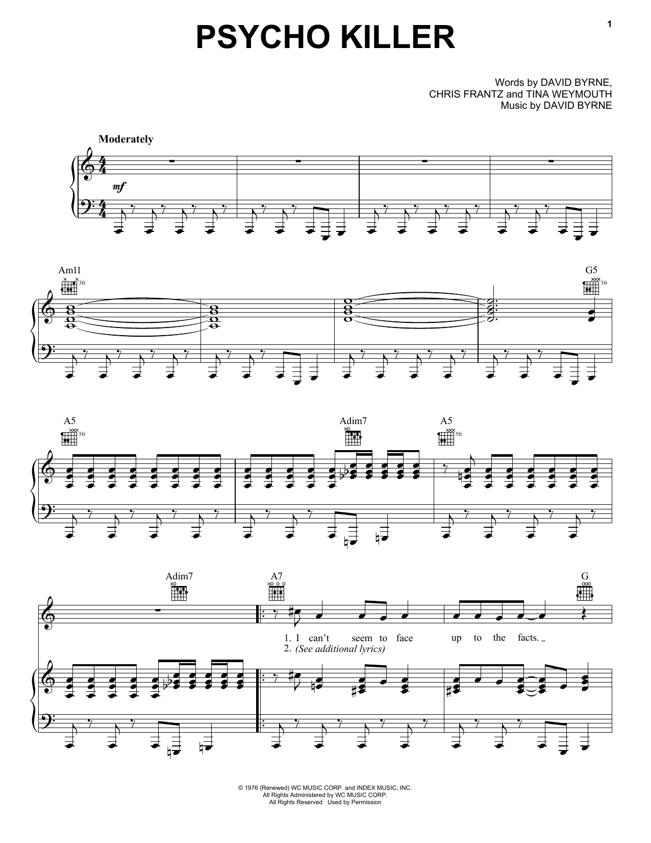 Quick facts Psycho Killer about digital sheet music