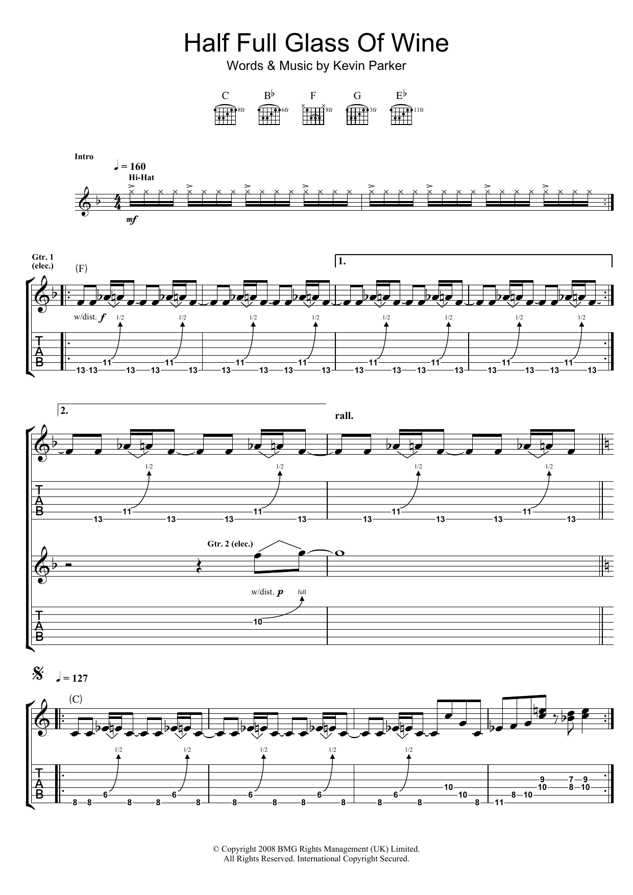 Download or print Tame Impala Half Full Glass Of Wine sheet music, chords and digital score arranged for Guitar Tab. This Rock score includes 7 page(s).