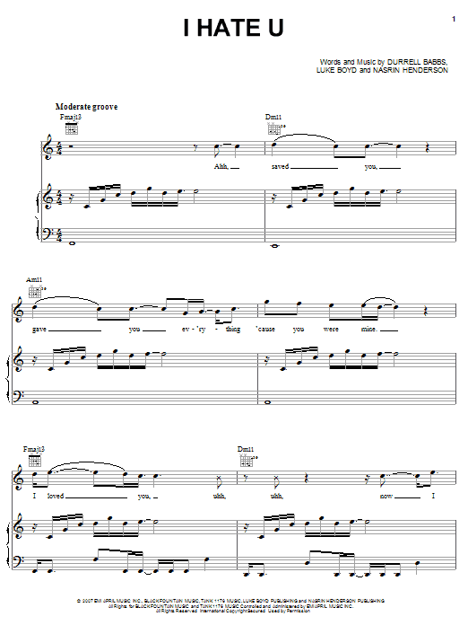 Download or print Tank I Hate U sheet music, chords and digital score arranged for Piano, Vocal & Guitar Chords (Right-Hand Melody). This Pop score includes 8 page(s).