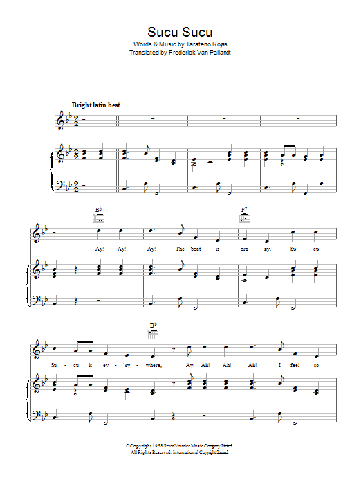 Download or print Tarateno Rojas Sucu Sucu sheet music, chords and digital score arranged for Piano, Vocal & Guitar Chords. This Standards score includes 3 page(s).