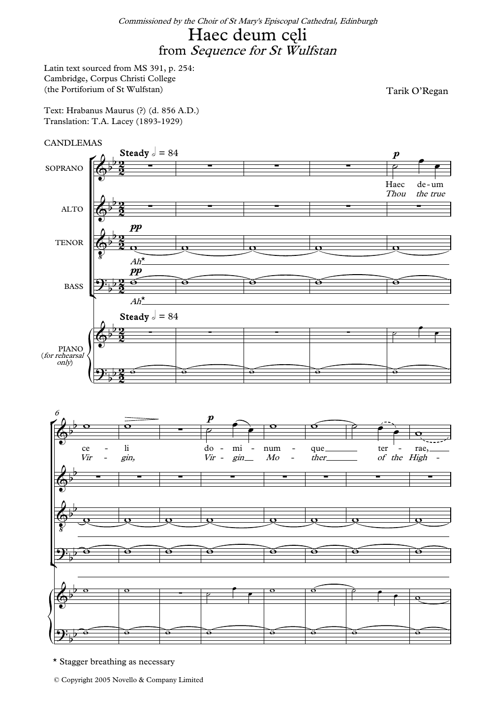 Download or print Tarik O'Regan Haec Deum Celi (From Sequence for St Wulfstan) sheet music, chords and digital score arranged for SATB Choir. This Classical score includes 17 page(s).