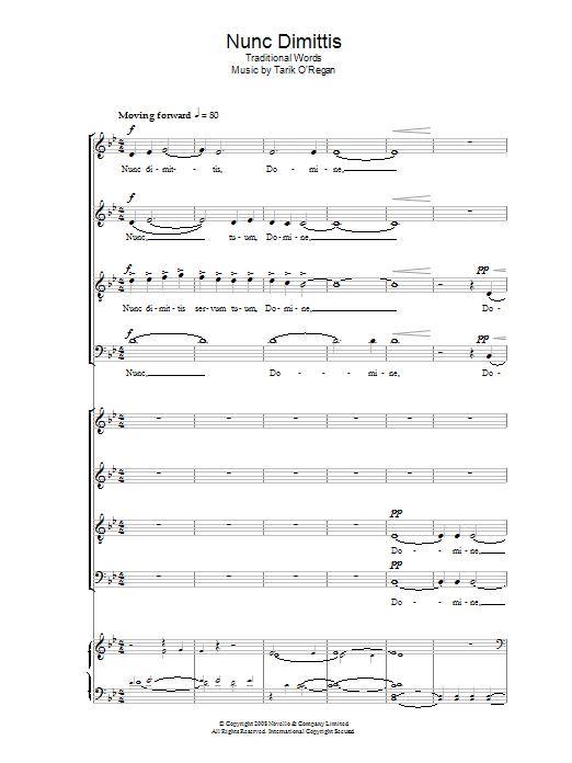 Download or print Tarik O'Regan Nunc Dimittis sheet music, chords and digital score arranged for Choir. This Concert score includes 13 page(s).