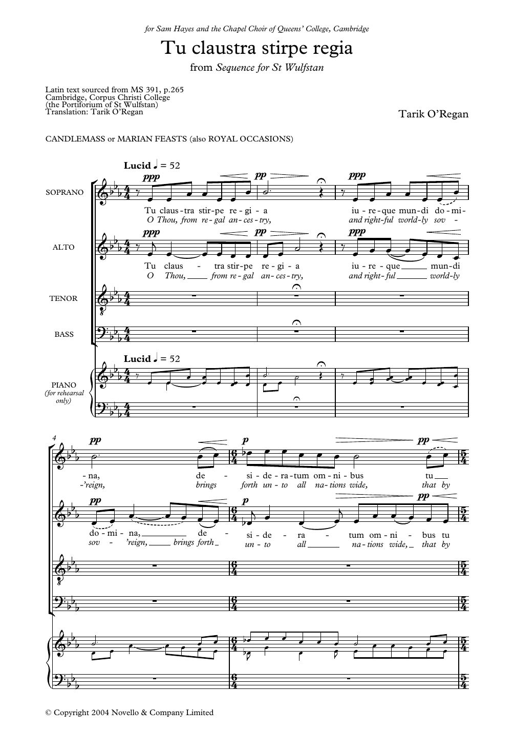 Download or print Tarik O'Regan Tu Claustra Stirpe Regia (From Sequence for St Wulfstan) sheet music, chords and digital score arranged for Choir. This Classical score includes 8 page(s).