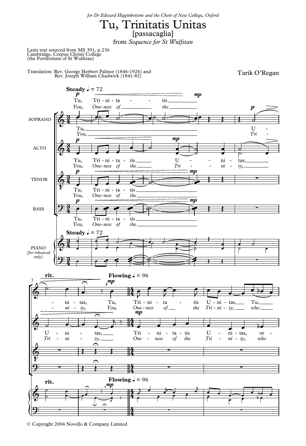 Download or print Tarik O'Regan Tu Trinitatis Unitas (From Sequence For St Wulfstan) sheet music, chords and digital score arranged for Choir. This Classical score includes 8 page(s).