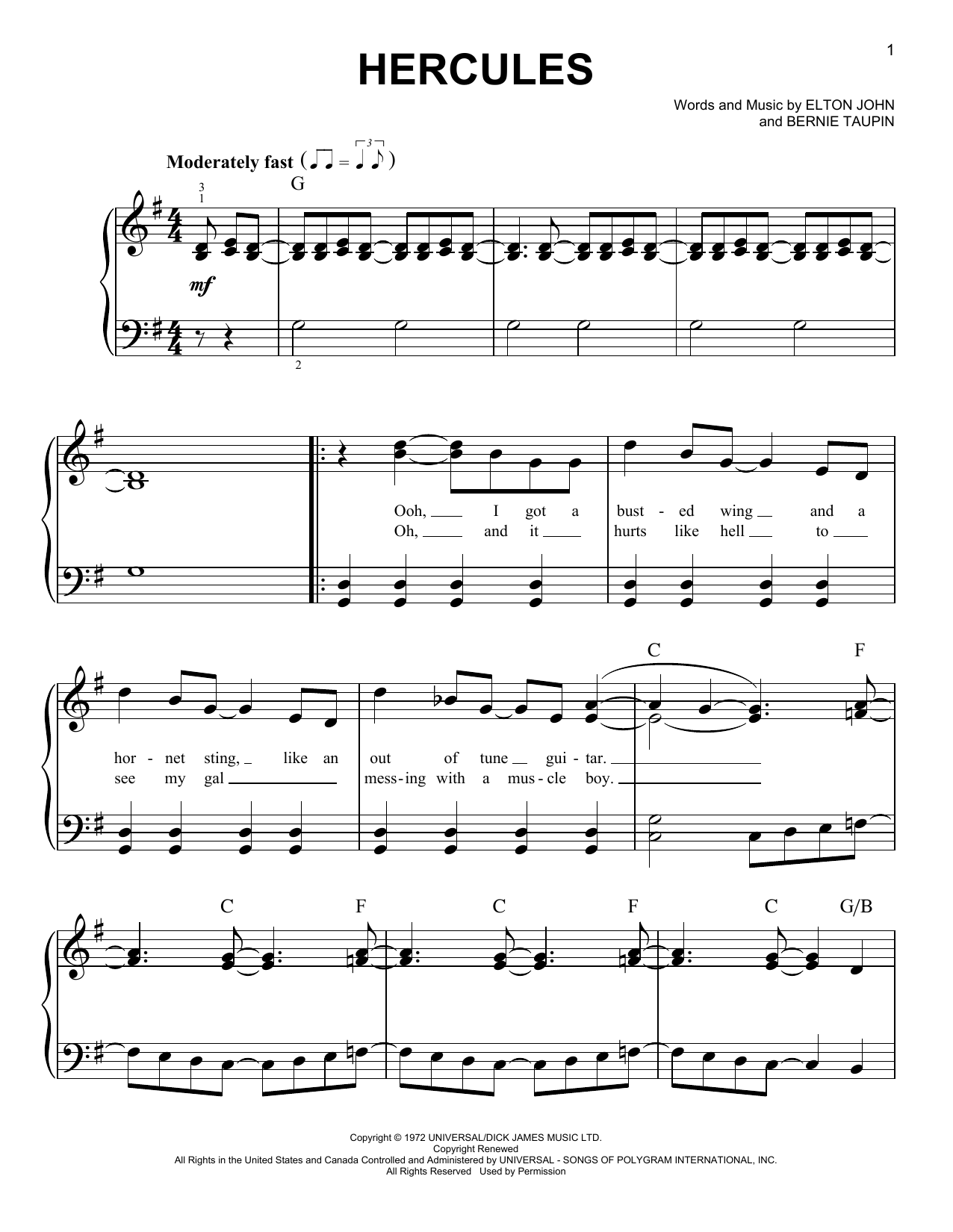 Download or print Taron Egerton Hercules (from Rocketman) sheet music, chords and digital score arranged for Guitar Chords/Lyrics. This Pop score includes 3 page(s).