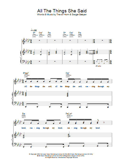 Quick facts All The Things She Said about digital sheet music