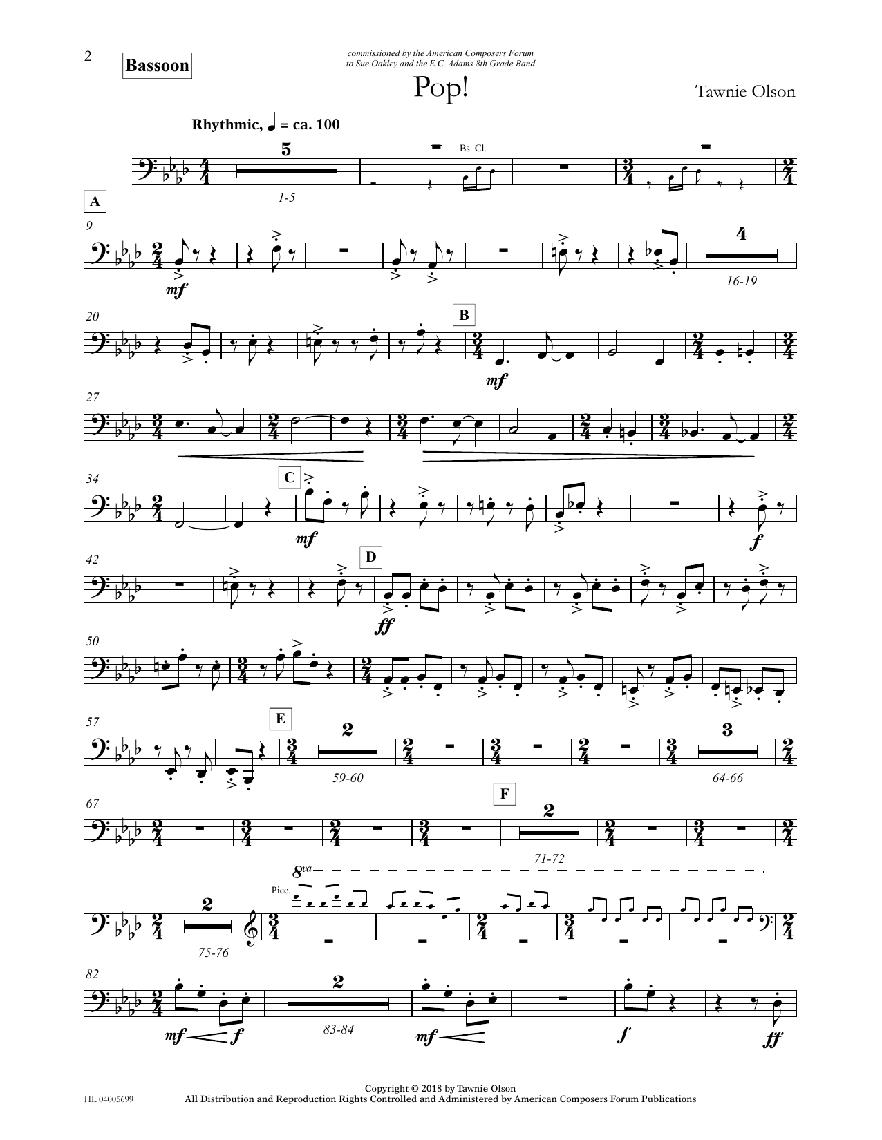 Download or print Tawnie Olson Pop! - Bassoon sheet music, chords and digital score arranged for Concert Band. This Concert score includes 2 page(s).