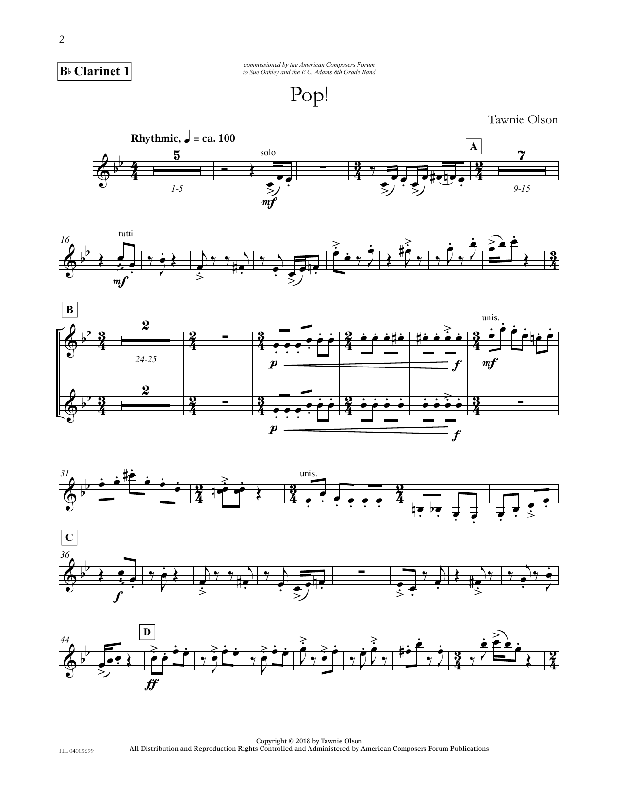 Download or print Tawnie Olson Pop! - Bb Clarinet 1 (Divisi) sheet music, chords and digital score arranged for Concert Band. This Concert score includes 3 page(s).