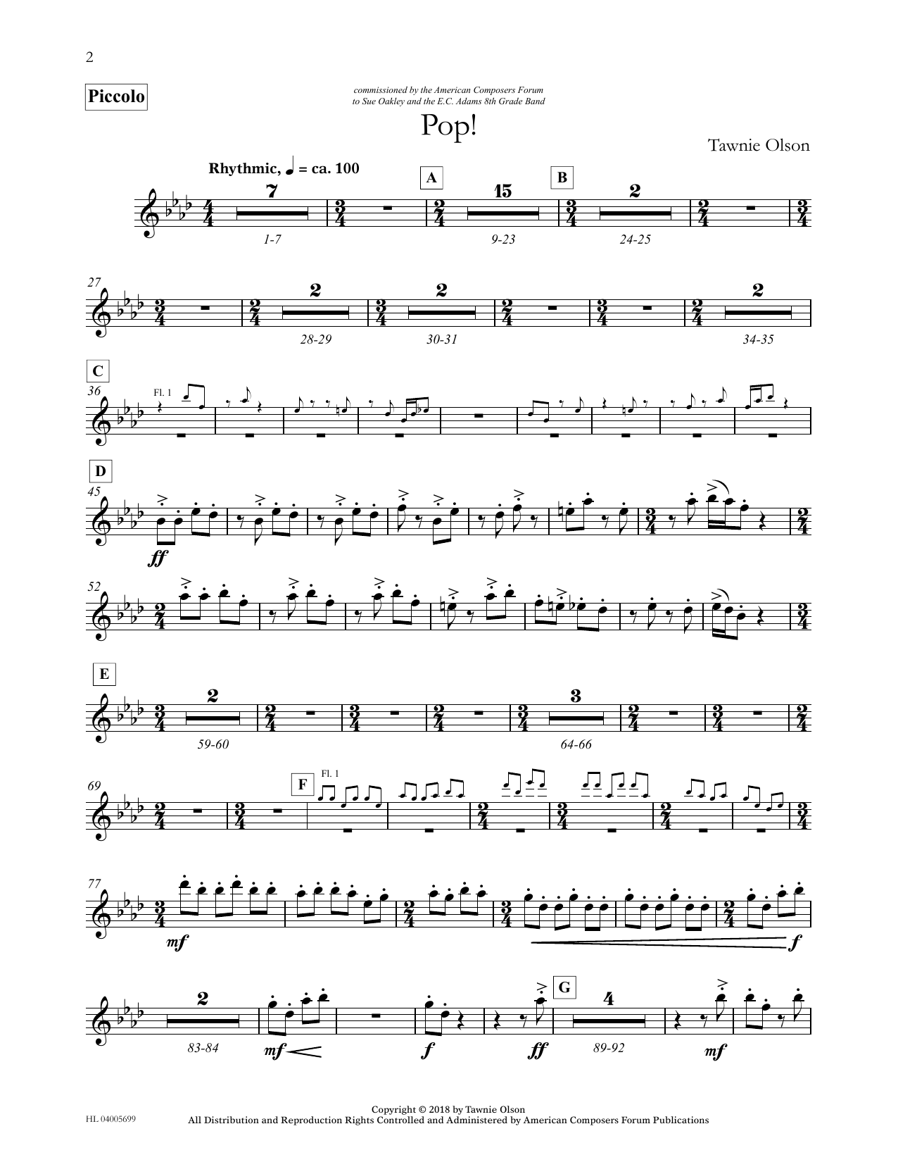 Download or print Tawnie Olson Pop! - Piccolo sheet music, chords and digital score arranged for Concert Band. This Concert score includes 2 page(s).